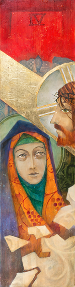 Tableaux sur bois, technique flamande en glacis à l'huile, dorure à l'or fin à la feuille de 21 carats